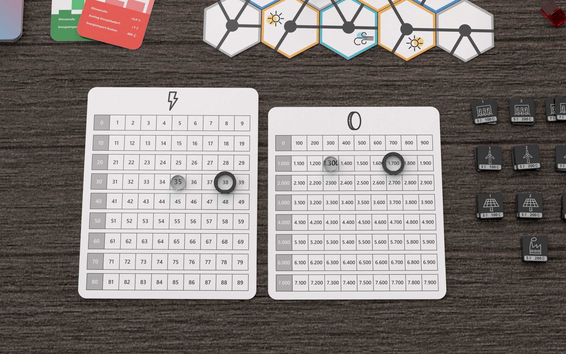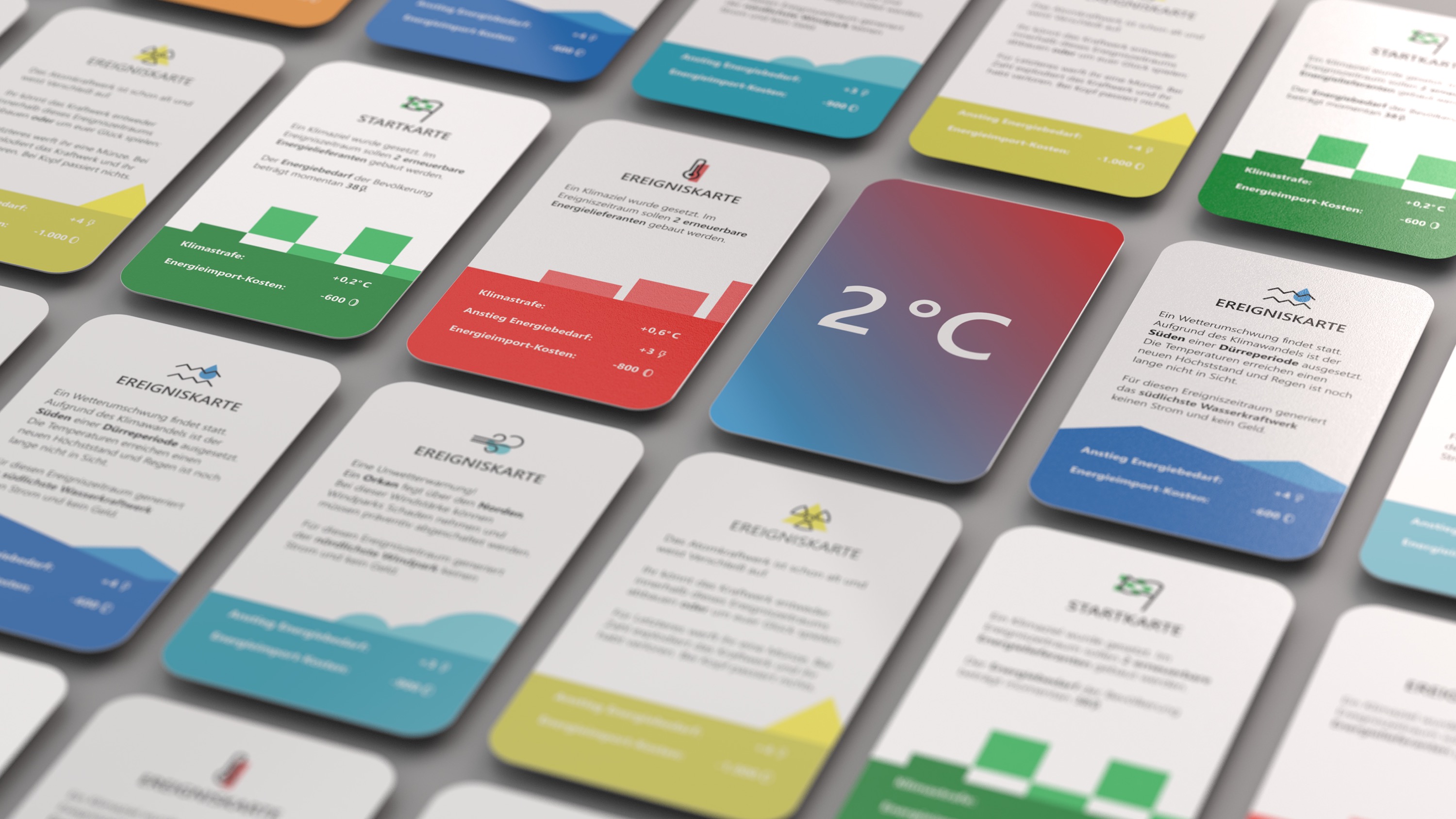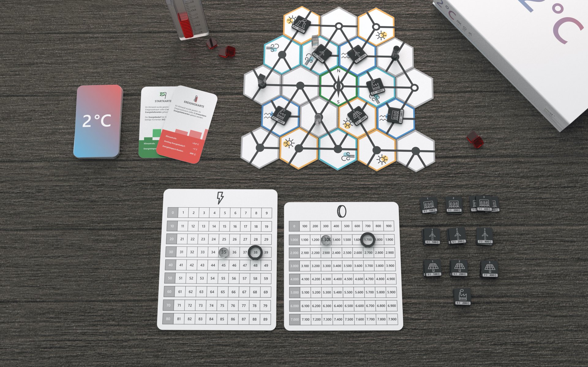 2 °C ist ein kooperatives Spiel, in dem ihr das gemeinsame Ziel verfolgt, alle Kohlekraftwerke und das Atomkraftwerk durch erneuerbare Energielieferanten zu ersetzen. Eure Aufgabe ist es, die Energiewende umzusetzen und gleichzeitig den Strombedarf zu decken — kein einfacher Balanceakt. Die Zeit läuft euch davon, denn der Betrieb der Kohlekraftwerke sowie die Nichteinhaltung der Klimaziele beschleunigen den Klimawandel: die globale Temperatur steigt an. Verhindert zusammen, dass die 2-Grad-Grenze erreicht wird!